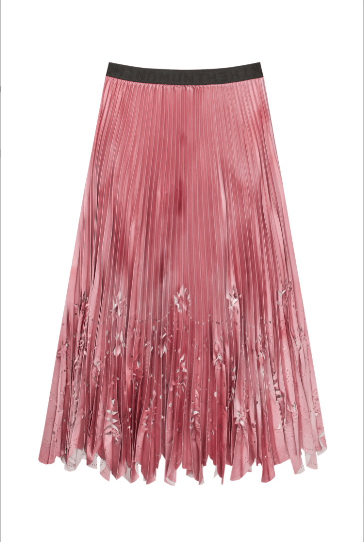 A pleated skirt with a beautiful all-over print, made from flowers Naja Munthe has planted in her own garden. This skirt is made from a recycled polyester blend, with an elastic band at the waist. This skirt has a regular fit.