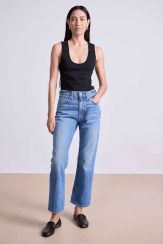 Kristin’s go-to jean is the Mara straight midrise, instasculpt ankle by DL1961. This busy fashion designer and store manager appreciates how they hug her body in all the right places and highlight her curves. The Mara comes in a variety of colors and the slight flair at the ankle allows her athletic legs to be the best version of themselves. Because Kristin spends more time on the store floor than anyone, she can vouch for the fact that this jean looks great on almost everyone.