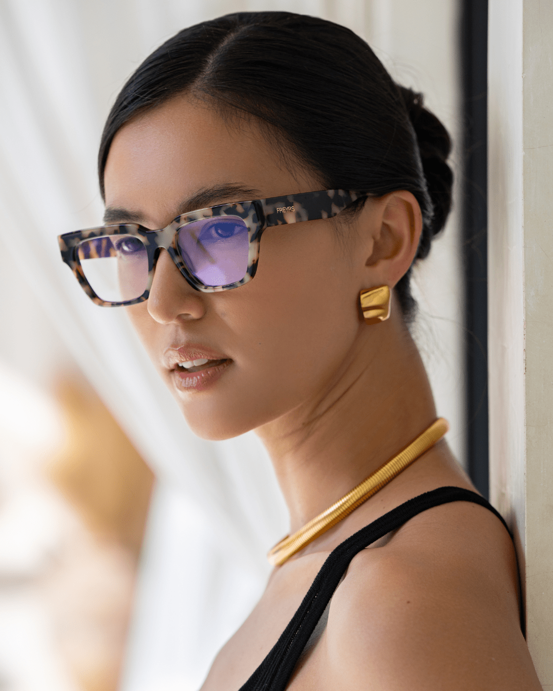 Please note: Amazon / Ebay / Poshmark sales are prohibited. Lenses High quality, impact resistant blue light blocking lenses. Get additional protection from eye strain and more comfort while reading from digital screens. Blue light filtering lenses block up to 30% of potentially harmful high-energy light ( HEV ). Frame Handmade acetate frames with durable stainless steel hinges Size Frame Height: 47mm Frame Width: 140mm Medium Fit Packaging Complimentary case included.