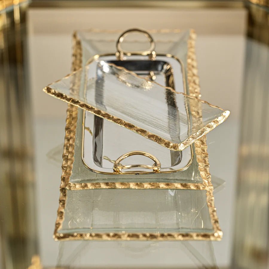 Textured Rectangle Tray w Jagged Gold Rim - 14.5"