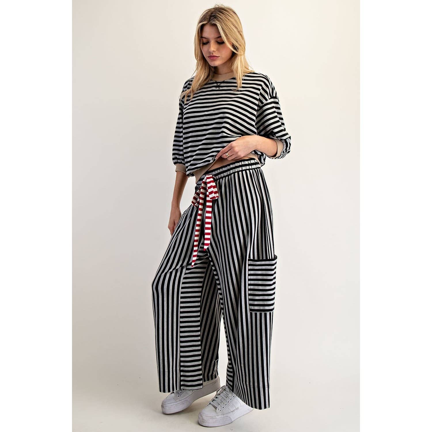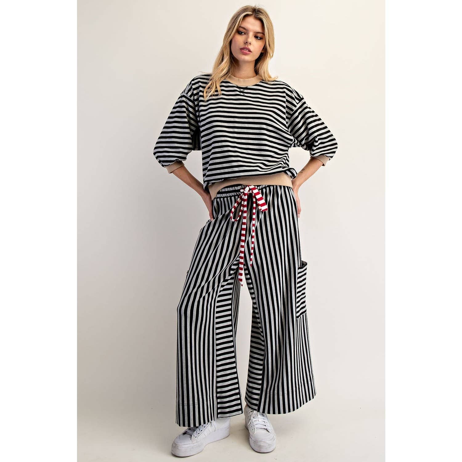 The relaxed fit moves with you, never against you, while the timeless stripe pattern adds just enough visual interest to keep things fresh. Pair with your favorite oversized knit and slides for peak cozy-chic energy, or dress them up with a sleek turtleneck and boots when the occasion calls for it.