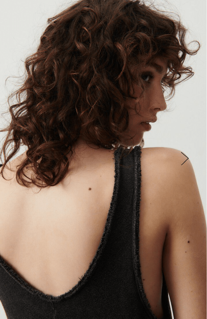 U-Neck tank dress in Vintage Black. Wear this simple but elegant dress 100 different ways! The model measures 181 cm and wears a size S.