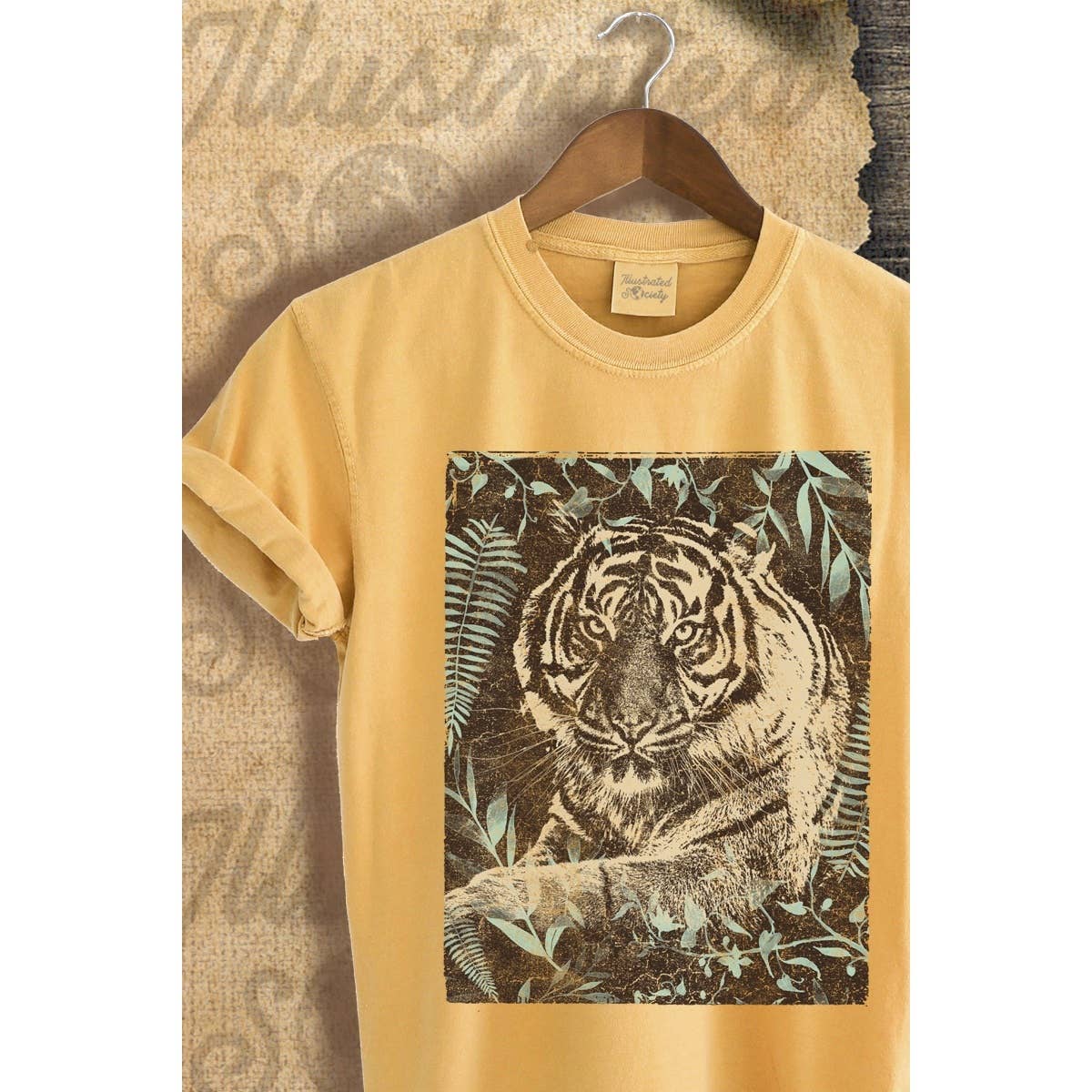 This isn't just a graphic tee—it's a statement. The TIGER print commands attention in rich mustard tones that bring warmth and edge to any look. Heavyweight garment-dyed cotton means this piece only gets better with time, developing that perfectly broken-in feel while maintaining its bold presence.