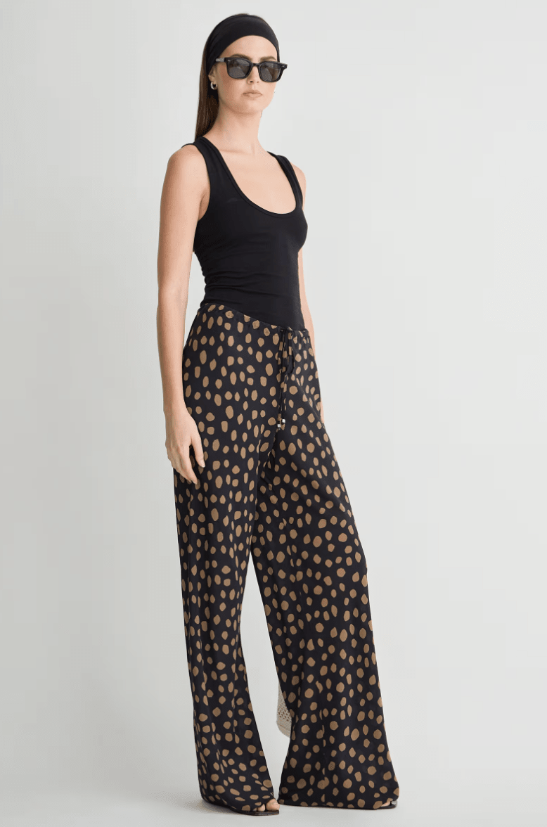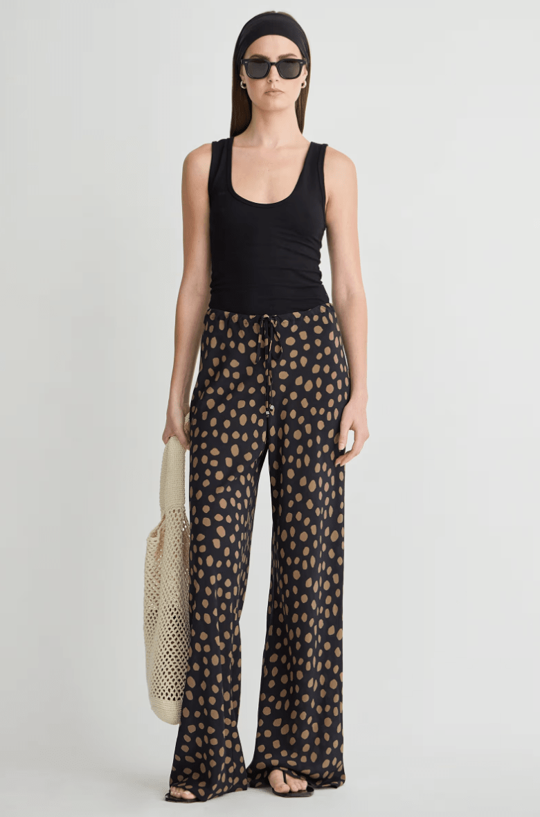 The Ink Bias Silk Pant is the kind of piece that makes everything else in your wardrobe work harder. Pure silk that pools and flows with every step, a Black/Camel colorway that's equal parts boardroom and après-everything — this is effortless dressing with an edge.