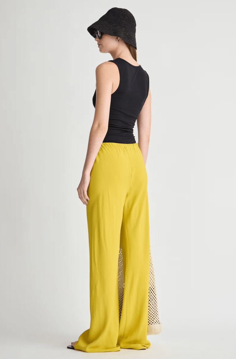 A softly gathered waistband and drawstring keep things easy, while the Italian viscose/elastane blend drapes like a dream — weightless, silky, and impossibly chic. In a rich Goldenrod hue that commands a room without trying.