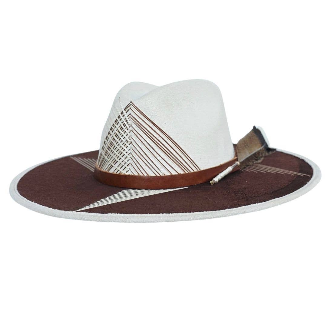 The Matisse is where high desert attitude meets downtown editorial. Crafted in luxe polyester suede with a structured 4" rancher crown, this hat doesn't ask for attention — it commands it. A delicate embroidered trim traces the crown and brim in warm beige, while a rich brown leather band and feather accent keep things wild, intentional, and unapologetically chic.