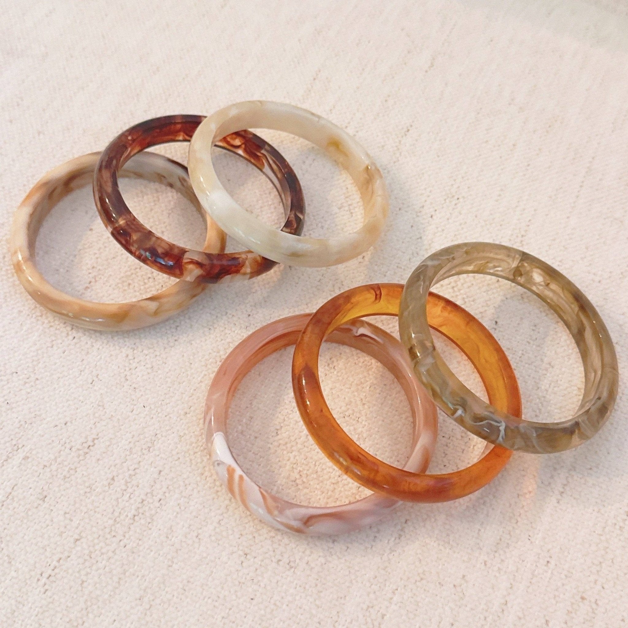 Add effortless style with the Natural Tones Bold Resin Bangle Set of 3. Featuring rich, earthy hues and a bold silhouette, these bangles bring modern charm and versatility to any outfit—perfect for stacking or wearing solo. ✔️ Bold Resin Design – Lightweight with a chunky, statement look ✔️ Natural Earth Tones – Warm, neutral palette complements any wardrobe ✔️ Versatile Set – Wear individually or stacked for added impact Dimensions: Approximately 2.5" inner diameter Materials: Resin Lead and nickel free Imported