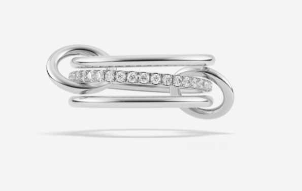 The Sonny ring was forged with simplicity in mind. Its core band of micro pave white diamonds is framed by two outer bands of lucent 18k gold, linked by two richly tonal 18k gold connectors. The Sonny features the thin 1.7mm bands, and is perfect for stacking. Ideally suited for everyday wear, the Sonny features a fully-customizable design, with multiple fine metal options including: rose, yellow, white, and Black Gold, all of 18k purity. The Sonny features conflict free diamonds, and is individually made to order in Los Angeles.
