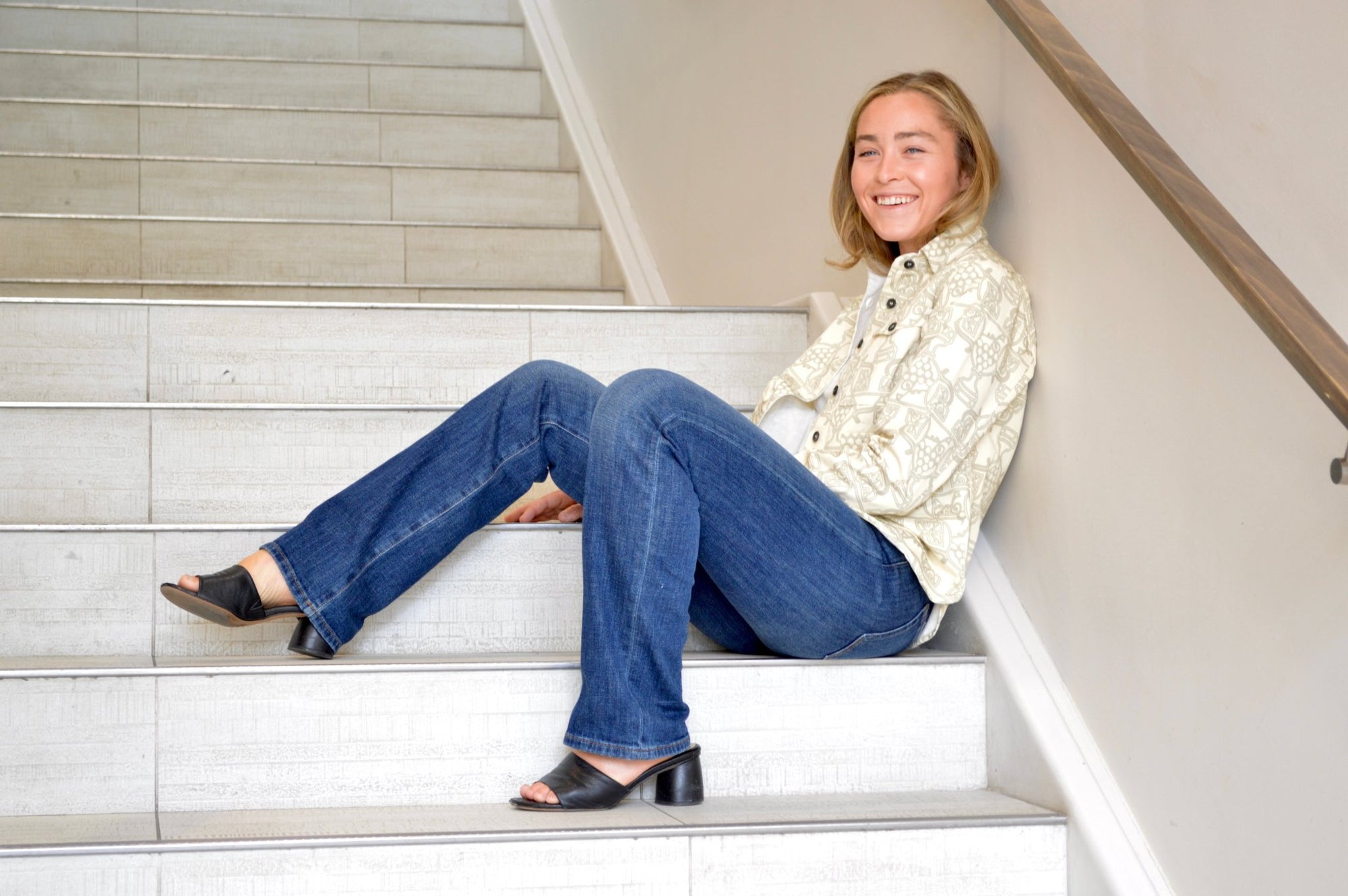 Milo Straight Leg Jean - Mid Blue - Cutoff Hem